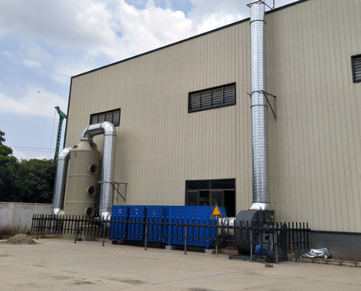 噴漆廢氣處理工藝:噴漆廢氣→水簾柜→水噴淋廢氣處理塔→UV光解設(shè)備→活性炭吸附器→離心風(fēng)機→達標排放