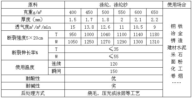 滌綸針刺過濾氈是制做常溫除塵布袋的理想材料,滌綸針刺氈采用中石化化生產(chǎn)的高標(biāo)準(zhǔn)滌綸纖維,按照國標(biāo)GB12625-90標(biāo)準(zhǔn)生產(chǎn),加工制作的過濾材料,為常溫過濾材料的主要品種。滌綸又稱聚酯,無論在干、濕性狀態(tài)下變化不大。它對絕大部分常溫中的氛圍提供良好的