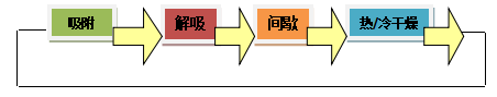 脫附過程結束后,吸附器內的溫度很高,通過間歇過程可使吸附器放空降溫,以及通過調節(jié)間歇時間來調整總的吸附時間。