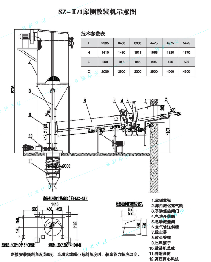 散裝機自帶除塵器,過濾面積為64m2,排塵濃度≤30mg/Nm³(滿足國家環(huán)保有關(guān)標(biāo)準(zhǔn)要求)。