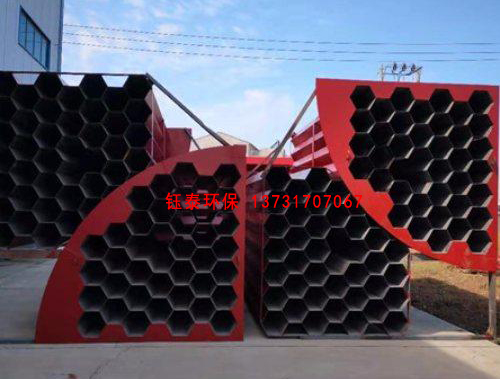 煤氣發(fā)生爐電捕焦油器,蜂窩式電捕焦油器與管式電捕焦油器相比,其主構(gòu)造類似。蜂窩式電捕焦油器是將通道截面由圓形改為正六邊形。兩個相鄰正六邊形共用一條邊,內(nèi)部的正六邊形的六條邊均被包圍它的六個正六邊形所共用