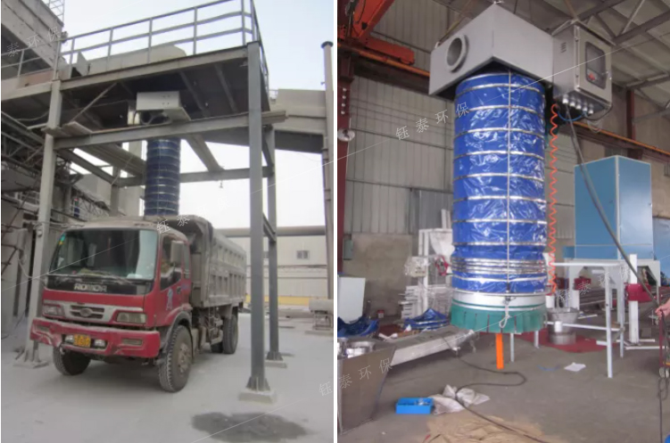 一鍵開啟自動裝車,粉塵無外溢是智能化無塵裝車伸縮溜筒的亮點,為了使無塵裝車伸縮溜筒具有除塵功能,關鍵是在溜筒出口處布置吸塵點。在除塵器離心風機的驅(qū)動下,在溜筒出口處的吸塵點
