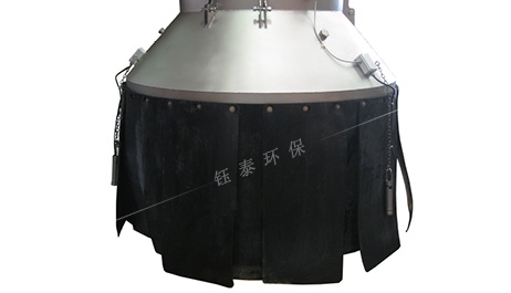 溜筒出口處的吸塵罩為多層結(jié)構(gòu),內(nèi)層為由皮帶膠組成的耐磨性能好、有一定相對硬度且具柔性的圍裙。皮帶膠圍裙主要用于緩解高速物料帶來的沖擊,緩沖高速氣流帶來的粉塵急速擴散。吸塵罩的皮帶膠圍裙也起支撐作用,可以避免由于負壓作用,外層帆布裙被吸扁,碰到料位檢測裝置導致誤報信號或者在溜筒出料口干擾物料流動。吸塵罩外層為雙重帆布圍裙,帆布裙的內(nèi)層長度需比皮帶膠圍裙大,需完全罩住皮帶膠圍裙。帆布裙外層比內(nèi)層略大,需覆蓋住溜筒出口處的物料。雙重結(jié)構(gòu)主要用于控制粉塵外揚及外部風力作用將粉塵揚起擴散。整個吸塵罩在物料面和溜筒出口間構(gòu)成一個相對密閉的空間,防止粉塵外溢。